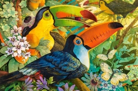 - Přírodní motiv s exotickými ptáky, který se skvěle vyjímá po zarámování.