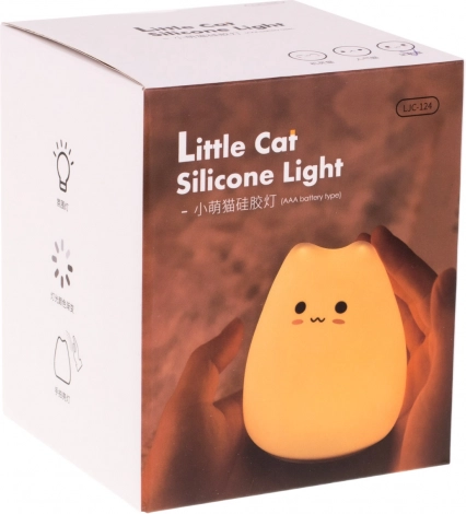 Tato designová lampa funguje velmi jednoduše - stačí vložit baterie a zapnout ji, aby se objevilo světlo. Zábava však začíná, když se mění barvy - stačí jemně poklepat rukou na lampu a je hotovo! Silikonová lampa Little Cat je skvělý nápad na dárek a skvělý interiérový prvek do dětského pokoje.