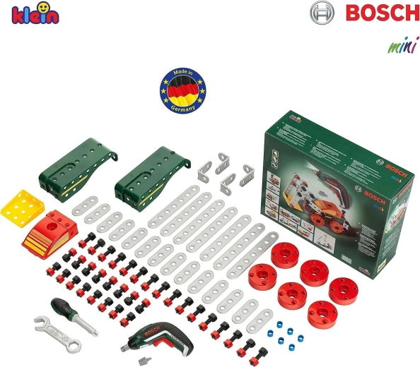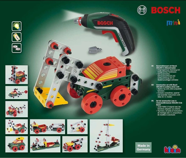 Dětská stavebnice z řady BOSCH mini od značky KLEIN nabízí realistický aku šroubovák BOSCH Ixolino a celkem 77 dílů pro tvořivé stavění. Postavíte až 11 různých modelů vozidel, rozvíjíte jemnou motoriku, logické myšlení a fantazii. Skvělá volba pro malé kutily od 3 let.