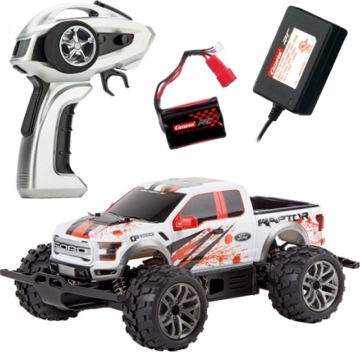 RC auto Carrera PROFI FORD F‑150 RAPTOR v měřítku 1:18 je navrženo pro rychlost, odolnost a přesnou ovladatelnost. Digitálně proporcionální řízení zajišťuje plynulé přidávání plynu i citlivé zatáčení, zatímco 4WD, olejové tlumiče a vysoký podvozek poskytují stabilitu a trakci na různých površích. Funkční přední a zadní světla navíc zvyšují zážitek z jízdy.