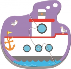 Každé z puzzle představuje jiný dopravní prostředek – auto, vlak, letadlo a loď – a podporuje kreativní hru.