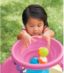 LITTLE TIKES Spiralin' Seas je zábavný vodní park, který děti vtáhne do světa experimentování s vodou. Díky růžovo‑béžovému designu, spirálové věži a kolu na vodu děti pozorují proudění, točení a cákání, zatímco si rozvíjejí jemnou motoriku, koordinaci ruka-oko a sociální dovednosti při společné hře.
