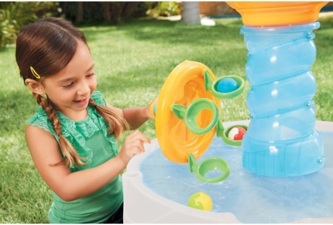 Spirálová fontánaFantastická zábava s vodou A míčky. Míčky se shazují do obrovské spirály. Hrajeme si s nimi při několika aktivitách. K dispozici je velké kolo, které nám pomůže vylovit míčky z vody. Hrát si s touto hračkou je obrovská zábava.