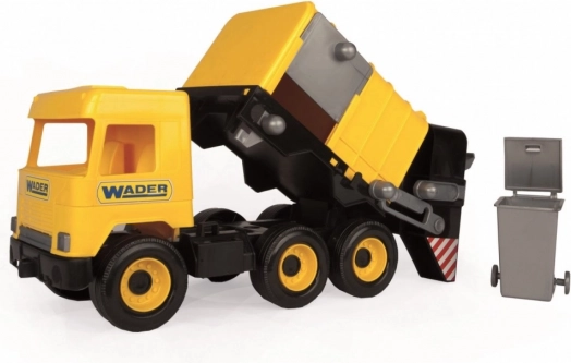Auto má funkční zadní nakladač, který usnadňuje nakládání a vysypávání „odpadu“ z přiložené popelnice. Svěží žluté provedení s černými detaily a šest kol zajišťují stabilitu a hladký pohyb po různých površích.