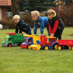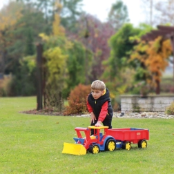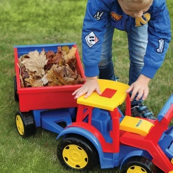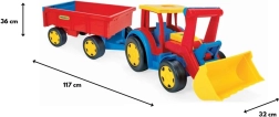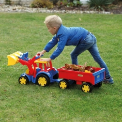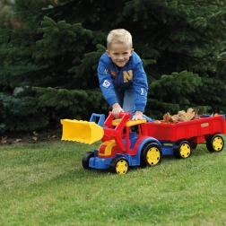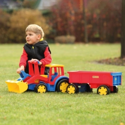 Gigantický traktor s nakladačem a přívěsem přináší spoustu realistické zábavy při stavění, nakládání i převážení nákladu. Robustní konstrukce, dlouhá 117 cm, zvládne intenzivní dětskou hru, zatímco funkční lžíce a přívěs s otvírací zadní klapkou dělají z každého zásahu na pískovišti opravdovou akci.