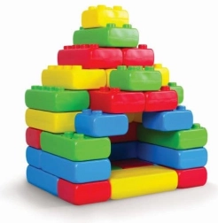 Sada 33 velkých dílů ve třech tvarech umožní dětem budovat domky, věže i stěny. Lehké a snadno spojitelné kostky podporují fantazii a samostatnou hru.