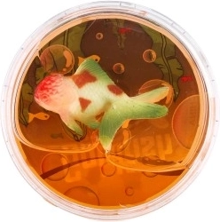 Tento průhledný sliz obsahuje malou rybku, která vypadá jako živá. Uložený v kompaktní krabičce, která se snadno vejde na stůl, do skříně nebo na polici.