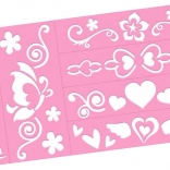 Opakovaně použitelné šablony s květinami, srdíčky a motýly usnadní rychlé a čisté vykreslení oblíbených motivů.
