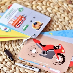 Set CzuCzu Vozidla přináší dětem spoustu chytrých aktivit s motivy různých dopravních prostředků. Knížka na šňůrce je plná pestrých ilustrací a úkolů, které lze díky stíratelnému fixu plnit znovu a znovu. Praktické balení s uchem se skvěle hodí na doma, na návštěvy i do auta.