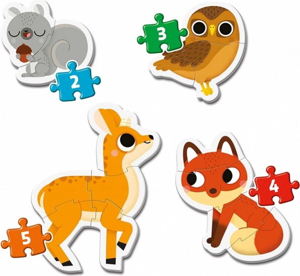 Objevte první skládání s puzzle sadou CLEMENTONI pro děti od 2 let. Čtyři samostatné skládačky s motivy lesních zvířátek (2, 3, 4 a 5 dílků) mají velké a pevné dílky o tloušťce cca 3 mm, které jsou snadno uchopitelné malými ručkami. Hračka podporuje jemnou motoriku, koordinaci oko–ruka a prostorovou orientaci při zábavném učení.