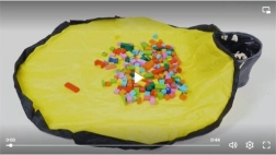 Rozložte velkou podložku (Ø 135 cm), nechte děti hrát a po skončení zatáhněte za šňůru se stopperem – hračky se během okamžiku schovají do koše.
