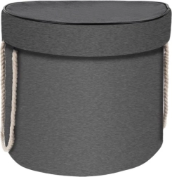 Díky komfortním lanovým madlům koš snadno přenesete z pokoje do pokoje, na terasu i na piknik. Neutrální šedý koš a žluto‑černá podložka zapadnou do každého interiéru.