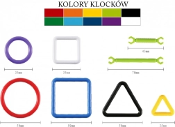 • Různé tvary – patičky, kolečka, čtverce a trojúhelníky pro stavbu rozmanitých objektů.