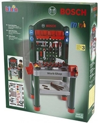 Objevte dětský pracovní stůl BOSCH se 79 díly pro malé kutily. Realistické plastové nářadí od THEO KLEIN podporuje kreativitu, jemnou motoriku a role-play. Součástí jsou pilka, kladivo, klíče, šrouby i pevný stojan s perforovanou stěnou pro pořádek při hraní.