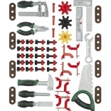 Pilka, kladivo, klíče, obcínky, pilníky, šrouby i spojky – vše, co dítě potřebuje pro stavění a šroubování.