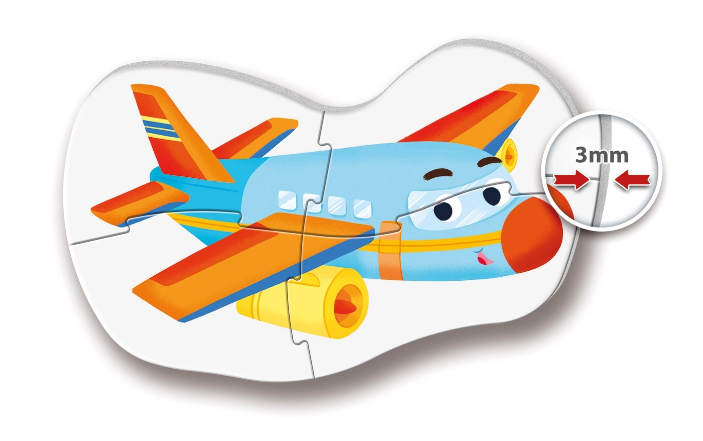 První skládací set pro nejmenší s motivy dopravních prostředků nabízí čtyři puzzle s počty 2, 3, 4 a 5 dílků. Velké 3mm dílky se snadno uchopují, podporují jemnou motoriku, koordinaci oko–ruka a prostorovou orientaci. Ideální od 2 let.