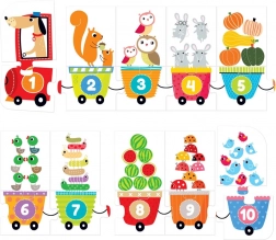 Hravé vzdělávání, které baví! Barevné dílky se spojují do dlouhého vlaku, v němž má každý vagónek své číslo a správný počet pasažérů či předmětů. Děti si nenásilně osvojí pořadí čísel, počty do 10 a procvičí si soustředění.