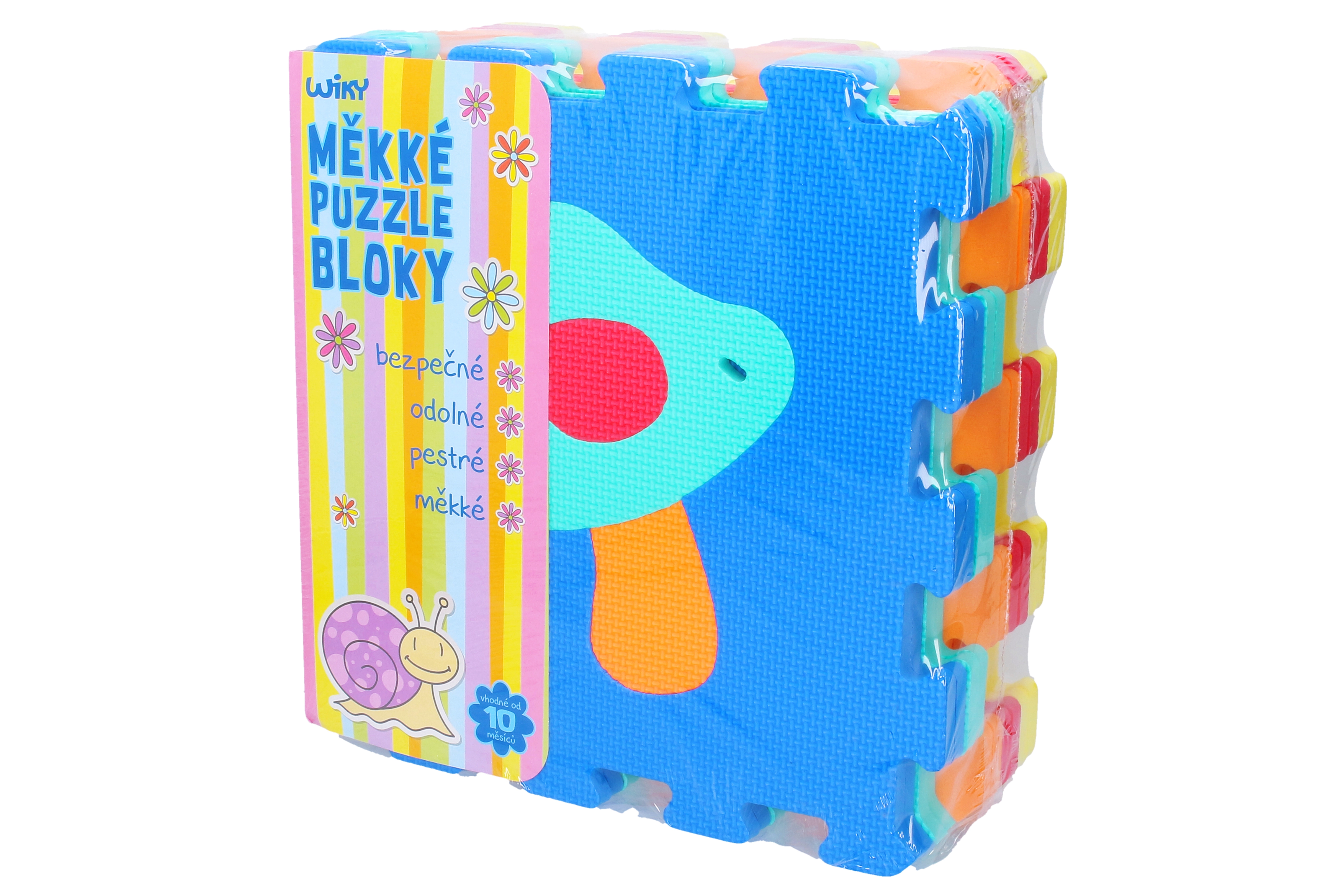 Každý díl má rozměr 30 × 30 cm a do sebe přesně zapadá. Balení obsahuje 10 kusů, takže si rychle sestavíte plochu podle potřeby. Vhodné pro děti od 10 měsíců.