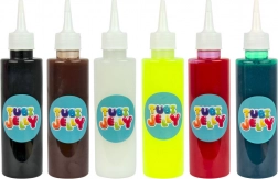- 6 gelových barev (150 ml): bílá, žlutá, tyrkysová, červená, černá, hnědá