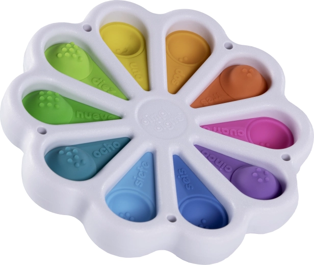 Objevte zábavnou smyslovou hračku Dimpl Digits od FAT BRAIN – květinové mačkací bublinky s číslovkami a počítáním, které podporují jemnou i hrubou motoriku, koordinaci oko–ruka a zdravý psychomotorický rozvoj. Barevné silikonové bubliny lákají k mačkání, učení barev a prvních čísel. Vhodné od narození.
