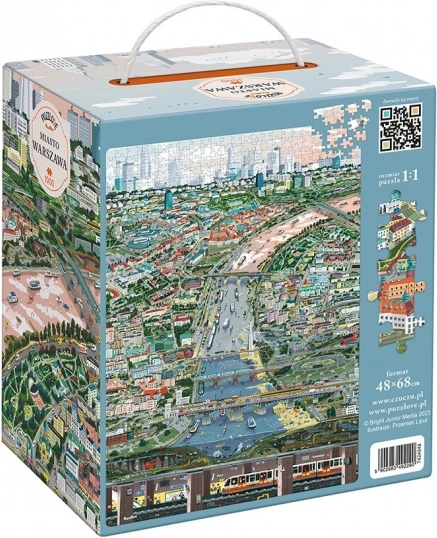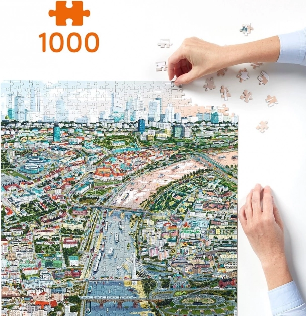 Připravte se na zábavnou výzvu a prozkoumejte Varšavu „prstem a očima“ na nádherně ilustrovaném obrázku. Puzzle o 1000 dílcích potěší milovníky městských motivů, rodiny i zkušené skládače. Můžete je skládat sami, s rodinou nebo s přáteli – tak, jak to máte rádi.