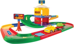 Dvouúrovňová dětská garáž WADER PLAY TRACKS přináší variabilní autodráhu o délce 3,4 m a bohaté příslušenství. Z pestrých dílů snadno postavíte různé trasy, sjezdy a parkovací místa, které vybízejí k nápadité hře a simulaci dopravních situací. Set obsahuje autíčko Kid Cars Sport s přívěsem a další vozidlo, dekorace a 96 samolepek pro snadné ozdobení tratě i garáže.