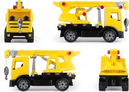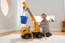 Robustní plastový autojeřáb pro malé stavitele nabízí realistické funkce a velkou dávku zábavy. Má délku 70 cm a po vysunutí dosahuje až 115 cm. Díky 4 výsuvným stabilizačním nohám, otáčení ramene o 270°, funkčnímu navijáku s hákem a mechanickému ovládání ramene si děti užijí autentickou konstrukční hru a rozvoj jemné motoriky.