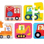 CzuCzu skládací puzzle vozidla – 5 sad po 4 dílcích