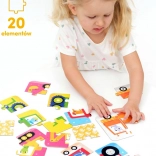 • Podpora rozvoje – trénuje jemnou motoriku, logiku, vnímání tvarů a barev, rozšiřuje slovní zásobu (názvy vozidel, zvuky, barvy).