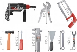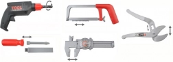 - Realistické funkce: otáčivý vrták, pohyblivá pila, šroubováky na přikládané šrouby a matice.