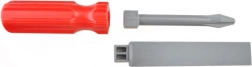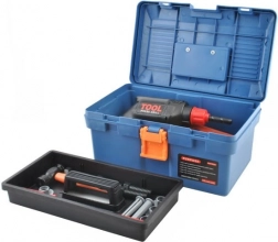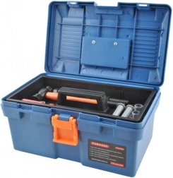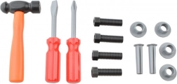 - kufřík, ruční vrtačka, kladivo, šroubovák křížový, šroubovák plochý, šrouby a matice, ruční pila, nastavitelný klíč, očkový klíč, nástrčný klíč, plochý klíč, posuvné měřítko, špachtle, pilník (výměnný nástavec), vodováha, úhelníky, spojovací díly s otvory