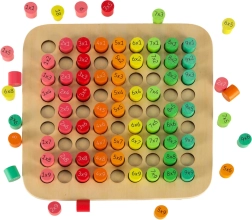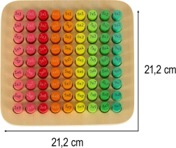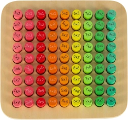 Tato velká dřevěná tabulka násobilky je ideální pomůcka pro školáky od 7 let. Díky přehledným kostkám s příklady a výsledky se děti učí násobení vizuálně a hravě. Barevné provedení zvyšuje přehlednost a podporuje snadnější zapamatování.