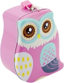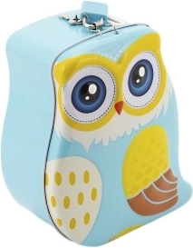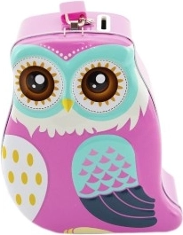 Pokladnička je k dispozici ve dvou atraktivních barvách – modré a růžové. Hravé sovičky rozzáří každý dětský pokoj a povzbudí děti k pravidelnému šetření.