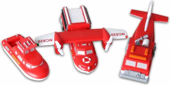 Sestavte loď RESCUE, obojživelné letadlo i hasičský vůz – nebo je mezi sebou libovolně kombinujte a vytvořte vlastní originály.