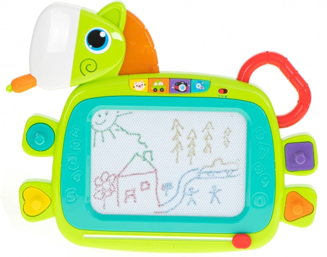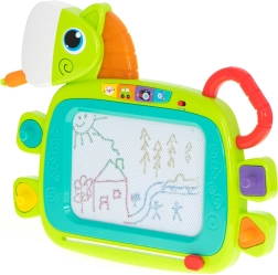 Magnetická tabulka HOLA je skvělá volba pro rozvoj kreativity a jemné motoriky. Díky čtyřem barevným zónám vznikají obrázky v barvách, které děti baví. Jedním tahem posuvníku plochu vymažete a je připravena na další nápady. Tvar koníka s svítící hřívou a veselými zvuky motivuje děti ke hře.