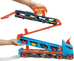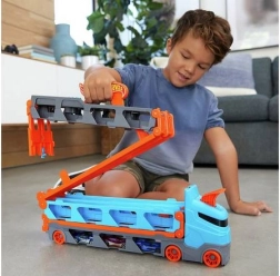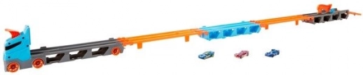 Proměň kamion během chvilky v plnohodnotnou závodní dráhu. Transporter ukrývá až 20 autíček za průhlednými okénky, takže máš sbírku stále na očích. Po zatažení za rukojeť se návěs rozloží do dvouproudé dráhy dlouhé 1,8 m, zatímco kabina se změní v dvojitou vystřelovací stanici pro férové starty.