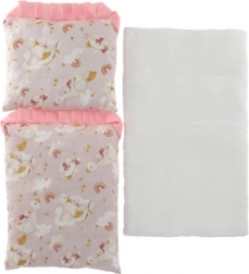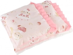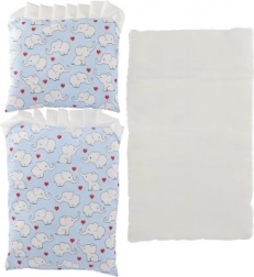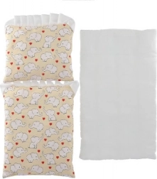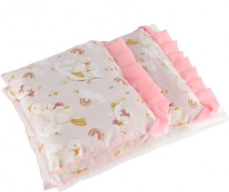 Praktická souprava pro panenky obsahuje vše, co je potřeba pro pohodlné spaní: měkoučkou peřinku, nadýchaný polštářek a podložku. Díky jemným materiálům a hravým motivům se hodí do každého dětského pokojíčku a podporuje rozvoj představivosti i role-play.