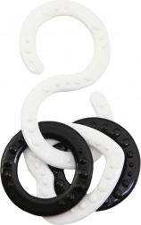 Propojitelná silikonová očka s reliéfem masírují dásně, podporují hmat a umožní snadné uchopení. S-háčky připevní hračky ke kočárku nebo autosedačce.