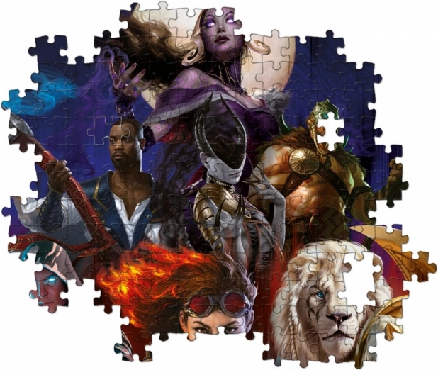 Objevte prémiové puzzle CLEMENTONI s ikonickým motivem MAGIC: THE GATHERING – Družina. Díky 1000 pečlivě vyřezaným dílkům si užijete plynulé skládání a atraktivní obraz, který se skvěle hodí zarámovat. Formát 50 × 69 cm po dokončení je ideální pro vystavení doma či v herně.