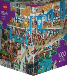Puzzle Chaotické Kasino od HEYE nabízí unikátní výzvu s 1000 dílky, ideální pro fanoušky barevných a zábavných karikatur. Balení obsahuje netradiční trojbokou krabici a plakát jako předlohu.