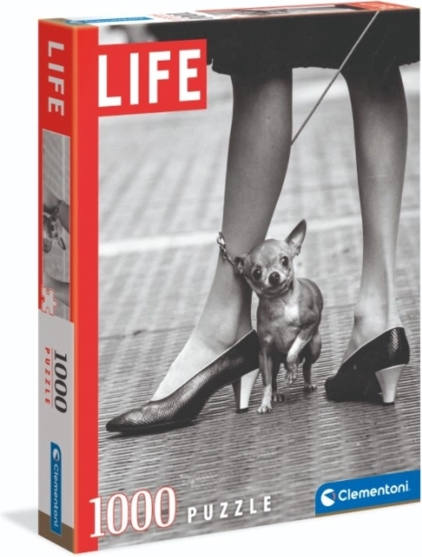 Objevte eleganci a nadčasovost s puzzlí Chihuahua od Clementoni, která představuje černobílý snímek malého psa chihuahua, jenž našel útočiště u nohou ženy. Tato skládačka z kolekce LIFE se skládá z 1000 dílků a je ideální pro milovníky skládaček.