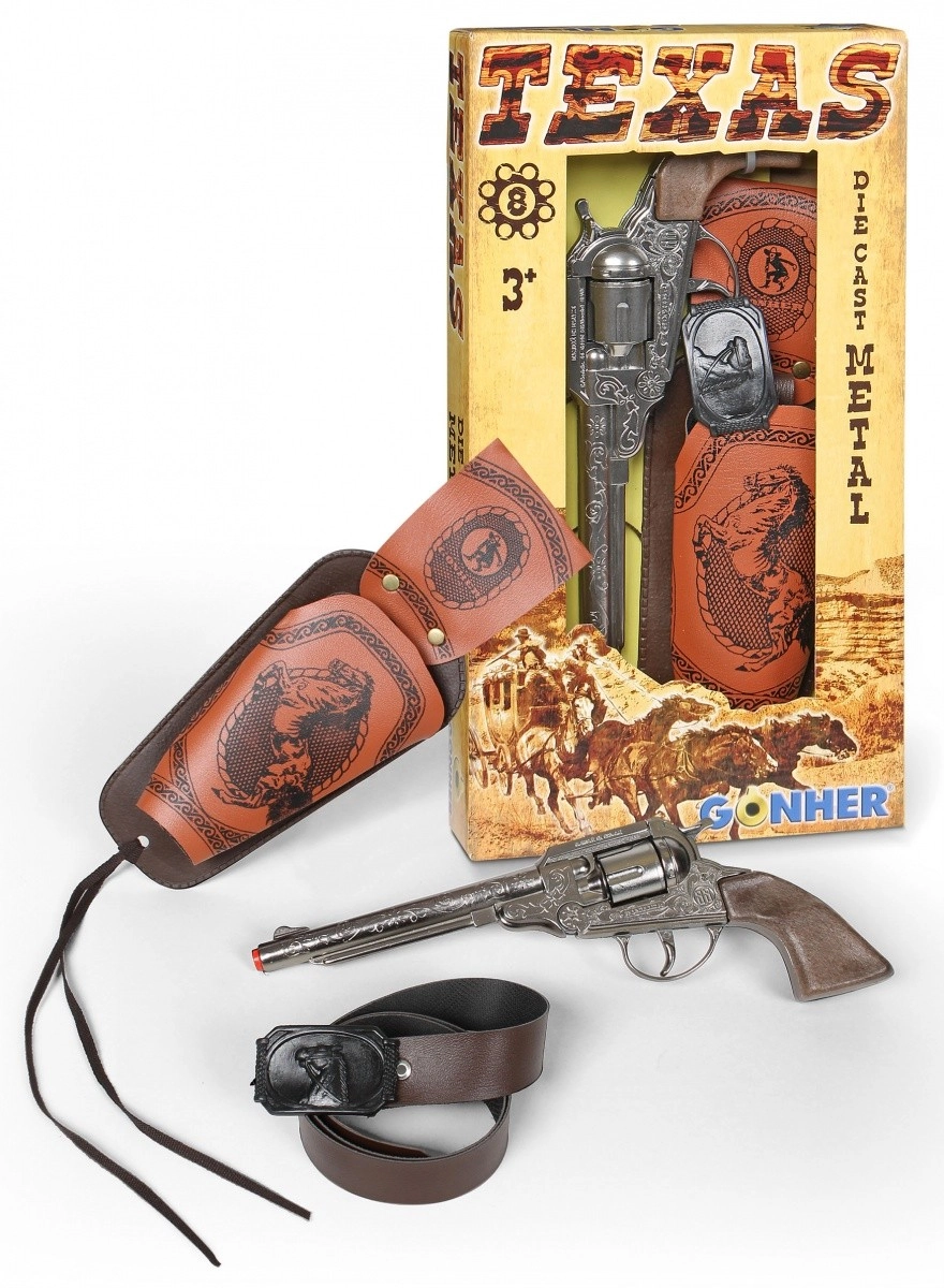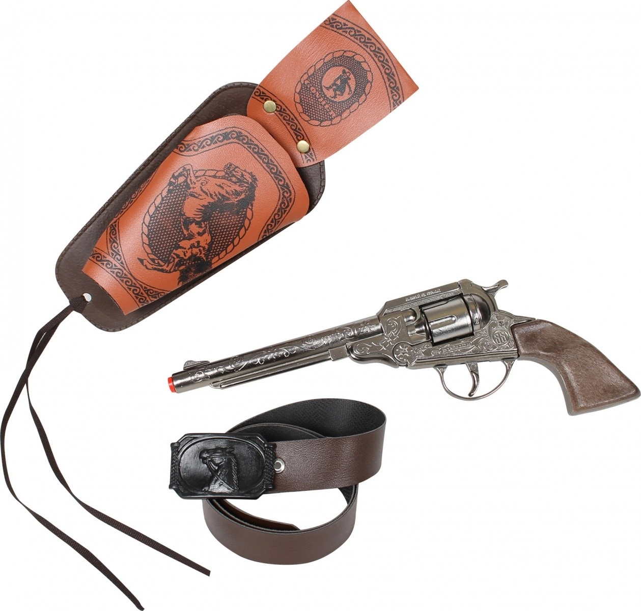 Revolver je určen pro 8-ranové pásky (nábojové pásky nejsou zpravidla součástí balení – ověřte u prodejce). Skvělá volba pro tematické kostýmy, karnevaly i každodenní hru na šerifa.