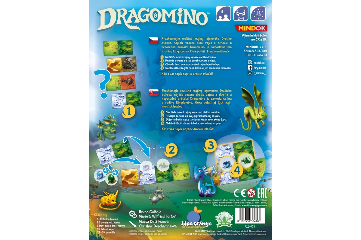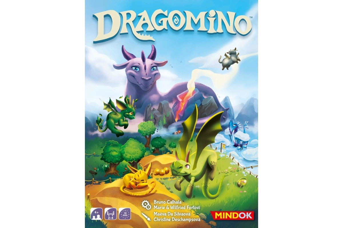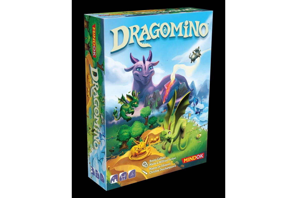 Dragomino je samostatná dětská verze populární rodiny KINGDOMINO. Hráči postupně vybírají a přikládají dílky domina do své krajiny. Kdykoli spojí dva stejné typy terénů, mohou si líznout vejce – odhalí se roztomilý dráček, nebo jen prázdná skořápka? Cílem je nasbírat co nejvíce dračích mláďat.