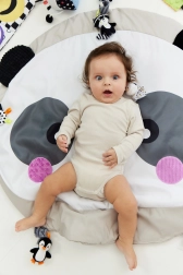 Smyslová hrací podložka Panda GAGAGU je navržená pro pohodlné a bezpečné hraní už od prvních měsíců. Díky kontrastním barvám, měkkému polstrování a pečlivě vybraným materiálům pomáhá rozvíjet zrak, hmat i jemnou motoriku. Roztomilý design pandy zútulní každý dětský pokojíček.