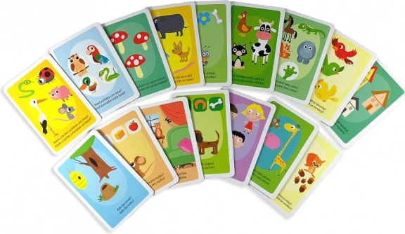 - 16 velkých barevných destiček (32 obrázkových hádanek), český a slovenský návod, pevná krabice s uchem