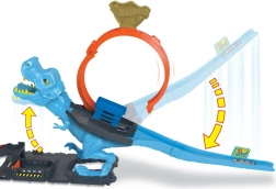 Porazte dinosaura a zachraňte město s herním setem Hot Wheels City Smyčka T‑Rexa. Obsahuje výkonný vystřelovač, 22,5cm smyčku a trasu vedoucí přes tlamu modrého T‑Rexe. Po úspěšném zásahu se oči T‑Rexe změní ze zuřivě žlutých na X po knockoutování. V balení je 1 kovové autíčko 1:64 a set lze propojit s dalšími dráhami Hot Wheels.