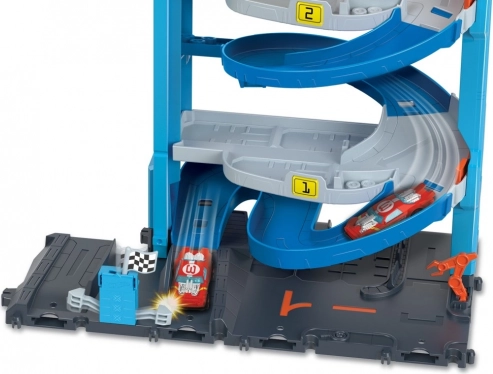 Proměňte domácí závody v adrenalinovou show. Závodní věž HOT WHEELS City se transformuje 2 v 1 – z vysoké solitérní dráhy na duální závodní okruh pro souboje autíček bok po boku. Oboustranný výtah funguje v obou režimech a během přeměny se automaticky přizpůsobí. Nechybí startovní brána pro férový hromadný start a dynamické sjezdy plné zatáček.