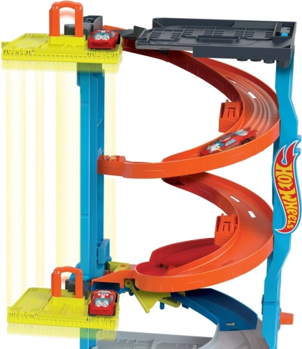 V režimu závodu umístěte 2 autíčka 1:64 do výtahu, vyvezte je nahoru, aktivujte bránu a sledujte, jak se řítí po spirálách k cíli. V režimu jedné dráhy dosahuje věž přibližně 64 cm a nabízí pořádnou porci rychlosti i zábavy. Set je kompatibilní s dalšími drahami HOT WHEELS, takže snadno vytvoříte rozsáhlé město plné kaskadérských výzev (další sety se prodávají samostatně). Barvy a dekorace se mohou lišit.