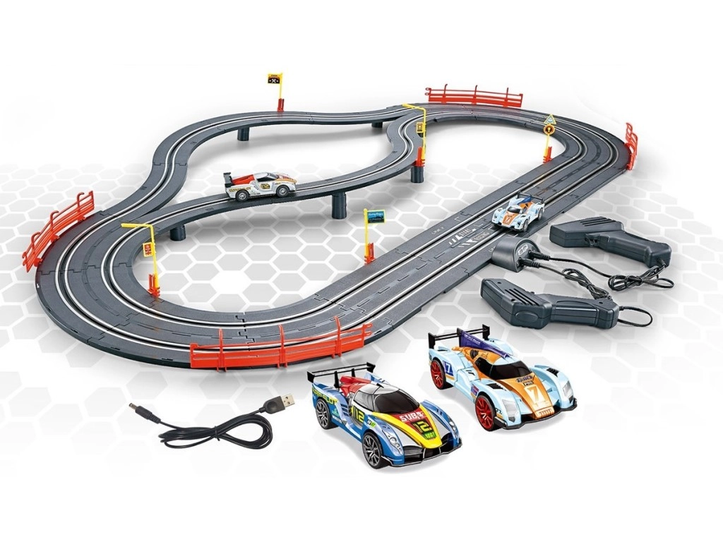- 2 závodní auta, 2 ovladače, most, příslušenství
