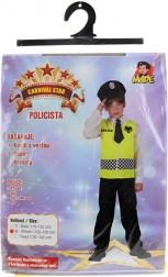 Souprava obsahuje košili s kravatou, policejní vestu a čepici, takže snadno vytvoříte kompletní vzhled. Zbývající doplňky, jako jsou tmavé kalhoty nebo boty, můžete doladit podle vlastních možností.